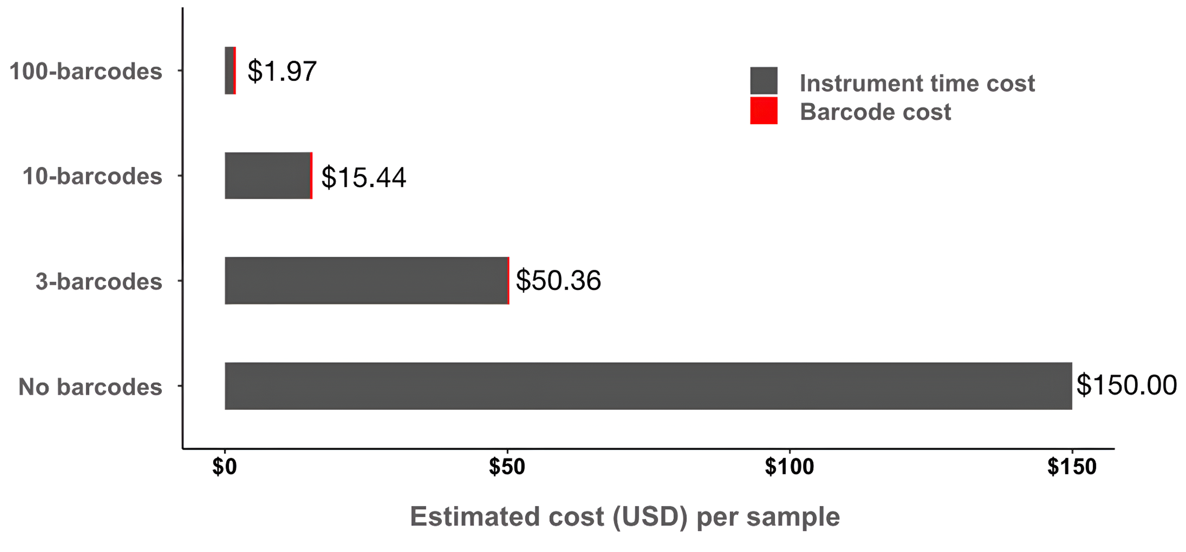 By applying barcodes, many collections of proteins (often called 'proteomes') can be simultaneously analyzed, increasing speed and decreasing cost almost proportional to the number of barcodes.